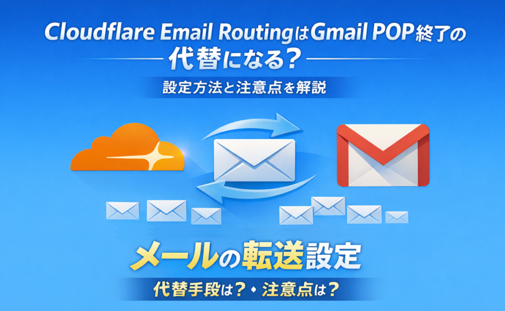 投稿日: 2026年2月13日2026年2月13日 投稿者: sho200Cloudflare Email RoutingはGmail POP受信サービス終了の代替になる?設定方法と注意点を解説 Cloudflare Email Routingの使い方がわかります。 https://www.value-domain.com/media/cloudflare-email-routing/